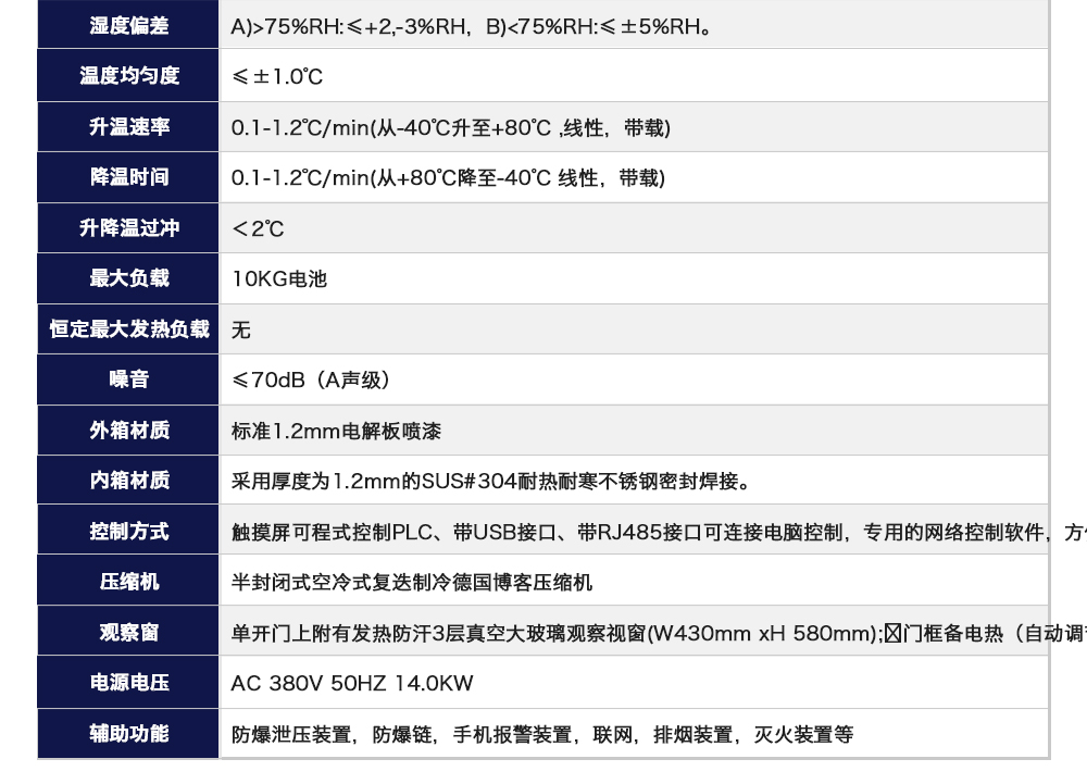 用途:溫度循環試驗機用于模擬電池包/電池系統/電池模塊/單體電池試樣在不同的溫濕度環境下,適應環境的能力