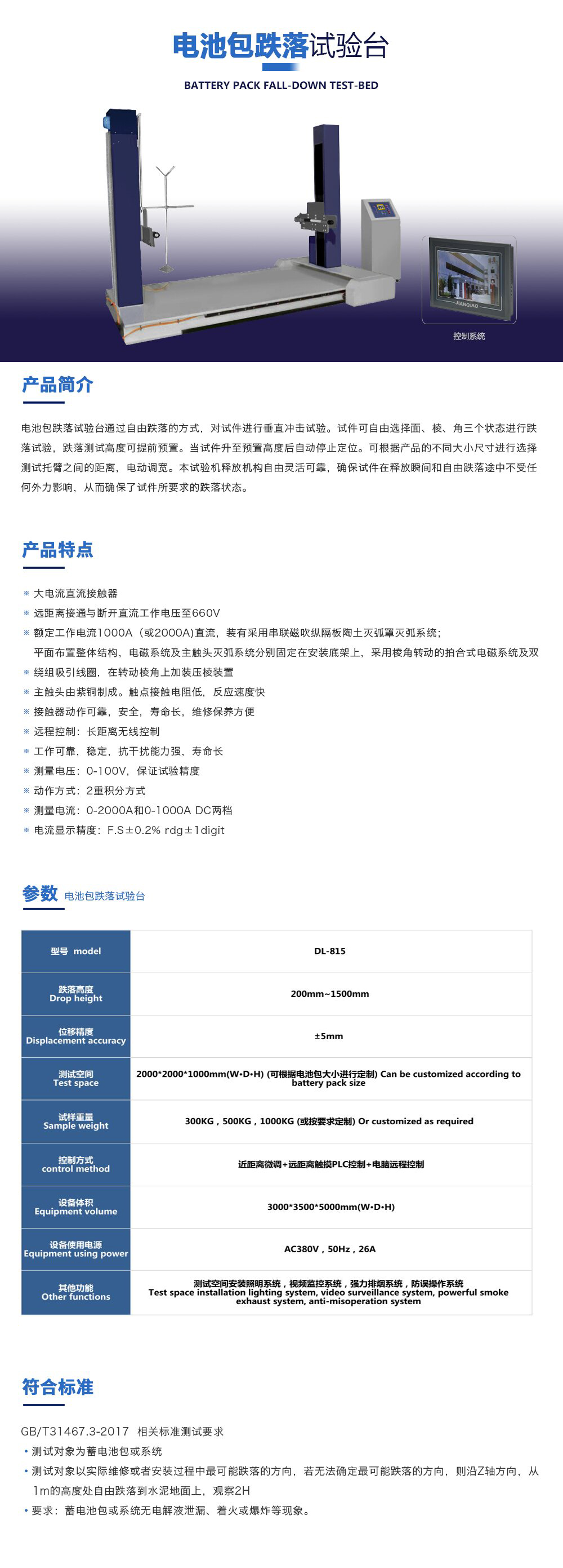 • 電池包跌落試驗(yàn)臺(tái)